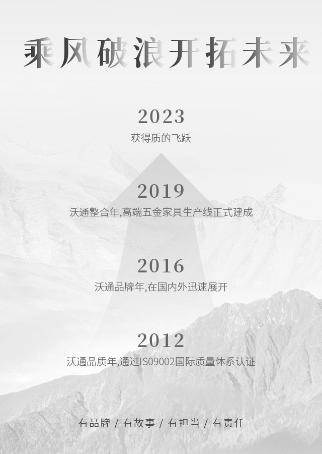 沃通五金將積極弘揚(yáng)中國家具文化,綜合國際家具潮流,運(yùn)用無限的創(chuàng)意,設(shè)計(jì)生產(chǎn)出大量造型美觀,引領(lǐng)時(shí)代潮流的新產(chǎn)品。